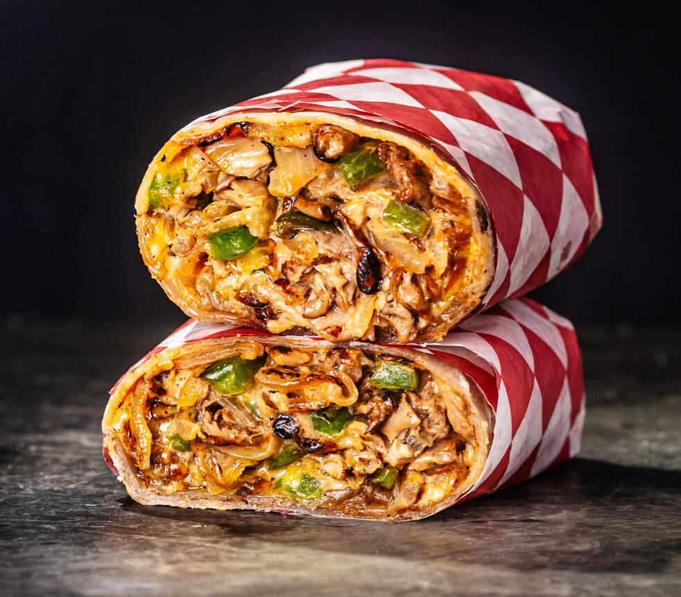 Tortilla de trigo, cebolla caramelizada, pimiento verde asado, queso tybo, queso cheddar, 150gr de lomo y salsa mil islas. Incluye papas caseras y un dip de salsa alioli.